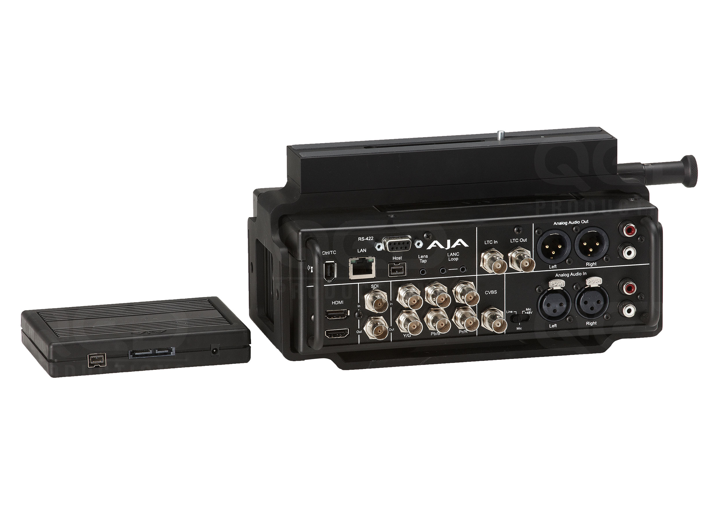 Control | LANC Loop (2 LANC connectors) Lens Tap: connects to optional AJA Lens Tap intercept cable placed between camera body and lens for start/stop control IEEE-1394a/FireWire 400 for control and timecode data |